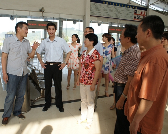 鄧煥章主席一行實(shí)地察看了婁底汽車(chē)南站候車(chē)大廳“三品”檢查崗、優(yōu)質(zhì)服務(wù)崗、驗(yàn)票崗等多個(gè)崗位的工作現(xiàn)場(chǎng),了解員工工作情況。