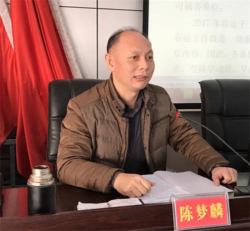 2017年春運(yùn)將于1月13日開始至2月21日結(jié)束,為確保廣大旅客春節(jié)出行平安順暢,2017年12月29日上午9時,公司董事長兼總經(jīng)理彭瑞華在六樓會議室主持召開公司2017年春運(yùn)工作會議,對2017年春運(yùn)工作進(jìn)行部署和安排,號召全司上下全力以赴迎戰(zhàn)春運(yùn),爭取2017年開門紅的勝利。公司領(lǐng)導(dǎo)、總部全體員工,各二級單位、子公司負(fù)責(zé)人(正、副職)以及各辦主任等參加了會議。