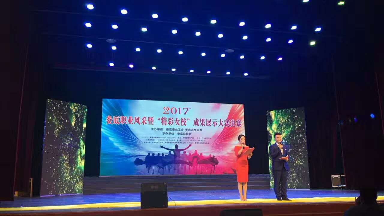 7月19日晚,由婁底市總工會、婁底市創(chuàng)管辦主辦的2017·婁底職業(yè)風(fēng)采暨“精彩女!背晒故敬筚悰Q賽在婁底市星星影劇院隆重舉行,來自全市各行各業(yè)的16家參賽隊伍,近200多名演員同臺競技。我司工會女職工培訓(xùn)學(xué)校選送的"精彩女校,點亮絢麗人生"在大賽中榮獲三等獎。