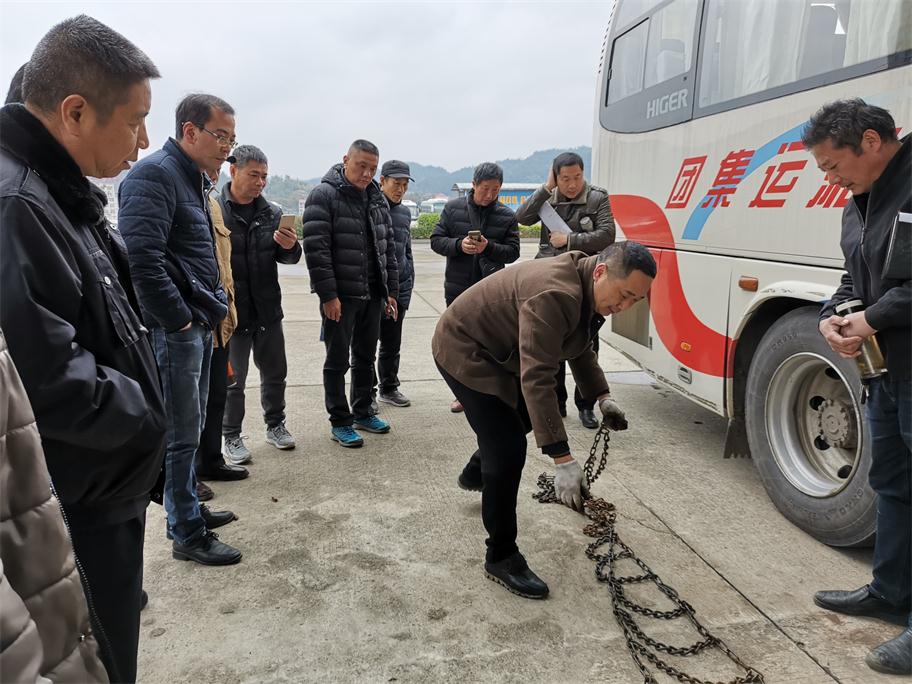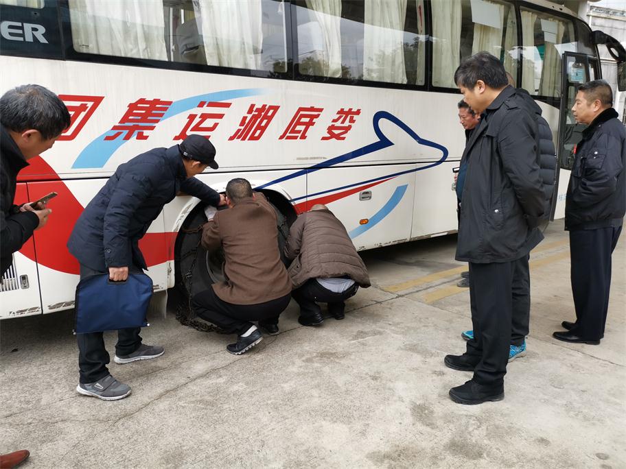 根據(jù)氣象預(yù)報(bào)發(fā)布,我市將持續(xù)低溫雨雪冰凍惡劣天氣,給老百姓工作、生活以及交通出行帶來極大影響。為將惡劣雨雪冰凍影響降到最低,確保旅客平安出行,婁底湘運(yùn)集團(tuán)嚴(yán)陣以待,積極應(yīng)對,落實(shí)責(zé)任,提前啟動(dòng)冰雪惡劣天氣應(yīng)急方案,扎實(shí)做好各項(xiàng)防范措施以及安全生產(chǎn)工作。一、公司召開安全例會(huì),提前就冬季安全工作進(jìn)行全面布置,重點(diǎn)部署了即將到來的低溫雨雪冰凍惡劣天氣安全工作。二、組織各單位安全副經(jīng)理、安技辦主任等現(xiàn)場觀摩防滑鏈安裝演練,要求安全管理工作中高標(biāo)準(zhǔn)督促駕駛員落實(shí)。三、通過安全QQ、微信群、電話等及時(shí)轉(zhuǎn)發(fā)天氣預(yù)報(bào),針對性采取防范措施。四、充分利用動(dòng)態(tài)監(jiān)控,第一時(shí)間掌握車輛的運(yùn)行狀態(tài),對在外運(yùn)行的班車逐臺查詢,對全司所有車輛每隔2小時(shí)發(fā)布惡劣天氣預(yù)警,五、要求各單位做好防冰防寒防滑以及安全警示警告及班次停運(yùn)通知公示工作,六是增派問訊人員,及時(shí)給廣大旅客做好停運(yùn)解釋工作,要求所有售票窗口不收取任何退票手續(xù)費(fèi),免費(fèi)提供熱開水,開放空調(diào)候車室等保暖工作。七是加強(qiáng)對各單位冬季安全工作督查力度。29日晚婁底迎來降雪,安全副總羅雄雁率安技部人員冒雪前往婁底車站南站檢查,并來到監(jiān)控中心,通過監(jiān)控平臺對全司車輛狀態(tài)以及按要求停運(yùn)車輛情況進(jìn)行重點(diǎn)檢查,對各單位防滑防冰保暖警識牌設(shè)立、值班值守情況進(jìn)行了現(xiàn)場落實(shí)與督辦。