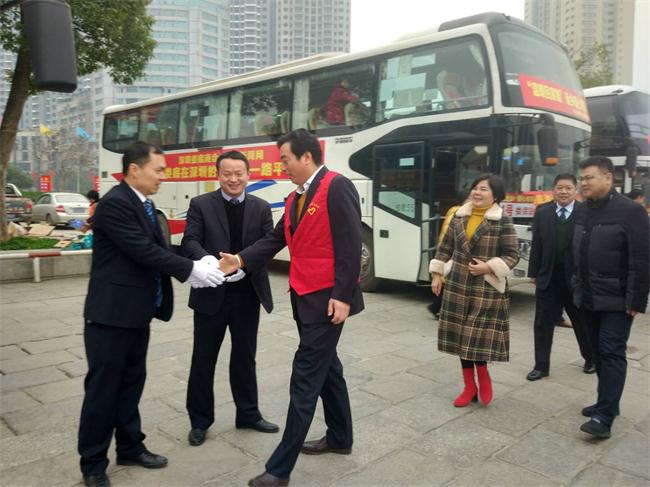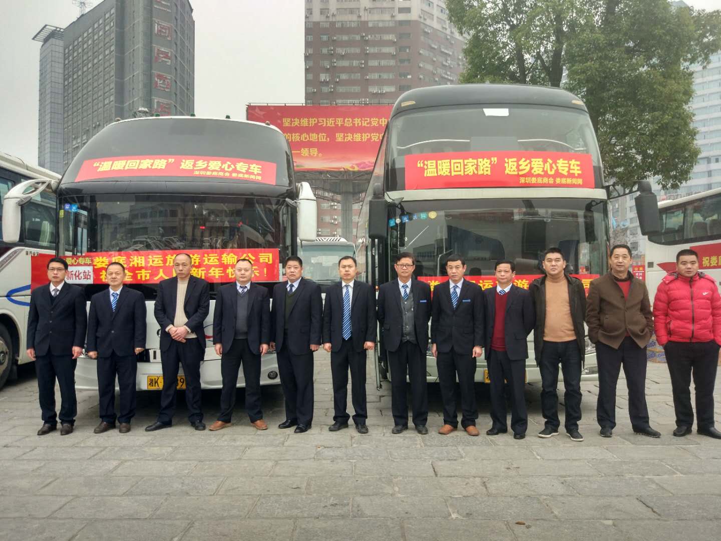 “駕駛員師傅們,你們辛苦了!感謝你們積極參加這次“溫暖回家路”活動(dòng),拜托大家一定要確保安全,做好優(yōu)質(zhì)服務(wù),將返鄉(xiāng)的家鄉(xiāng)親人們平平安安接回家過年。“1 月26日上午,在婁底火車站舉行的2019年度“溫暖回家路”大型公益活動(dòng)啟動(dòng)儀式現(xiàn)場,市委常委、宣傳部部長吳建平一行來到“溫暖回家路”溫暖回家專車前,一一握著擔(dān)任此次運(yùn)輸任務(wù)的婁底湘運(yùn)旅游公司駕駛員同志的手,親切叮囑道。“請領(lǐng)導(dǎo)放心,我們已做好充分的準(zhǔn)備,保證圓滿完成任務(wù),確保返鄉(xiāng)的家鄉(xiāng)親人們平安到家”。一直在現(xiàn)場指揮的旅游公司負(fù)責(zé)人李建軍代表公司向吳部長進(jìn)行了表態(tài),并匯報(bào)了"溫暖回家專車″運(yùn)力準(zhǔn)備、司機(jī)配備等情況。