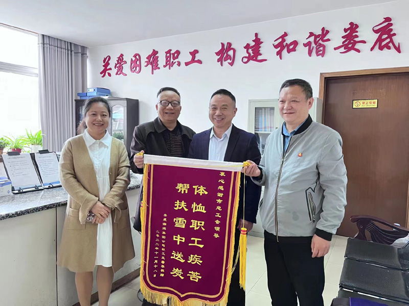 近日,受被幫扶困難職工代表王著容同志的委托,婁底湘運集團工會負責人專程來到婁底市總工會,將承載著困難職工濃濃的感恩和敬意的一面錦旗和一封感謝信專程送到市總工會黨組成員鄧江華、市困難職工幫扶中心主任朱志瓊手中,紅彤彤的錦旗上“體恤職工疾苦、幫扶雪中送炭”幾個大字真誠道出了困難職工對黨、對政府、對市總工會的感謝之情。