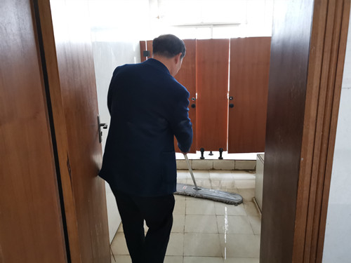 3月13號,是輪值衛(wèi)生的第一個(gè)星期,總部五樓衛(wèi)生由審計(jì)部負(fù)責(zé),公司監(jiān)事、紀(jì)委書記黃文和審計(jì)部的同事把五樓男女廁所、樓梯、走廊過道衛(wèi)生里里外外打掃得干干凈凈。負(fù)責(zé)三樓衛(wèi)生的黨群部部長鐘愛華和四樓衛(wèi)生的保衛(wèi)部部長姚邵洪也是帶著部門同事一起打掃衛(wèi)生。